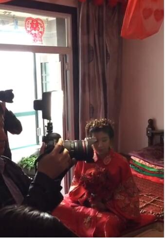 這段時長1分52秒的視頻顯示,在一個新房內,身穿中式裝的新娘坐在床上,旁邊有一些人在圍觀,包括一名攝影師。