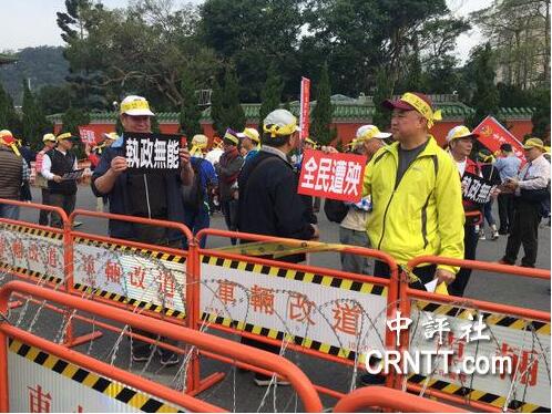 據東森新聞云3月29日報道,警消聯盟團體今天上午9點開始于忠烈祠外聚集,警方派遣150警力維護安全秩序;約莫在9點50分、10點鐘左右,總統、副總統、五院院長陸續到場。場外300抗議人潮,跪下且高舉“執政無能”、“全民糟殃”標語,在車隊一閃而過后,則高喊“蔡英文下臺”。