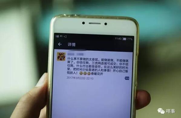 潘姐的微信朋友圈留言。南都記者張志韜攝