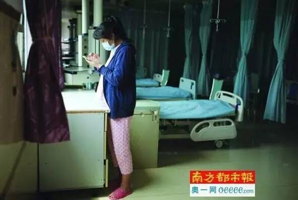 小麗在醫院打電話與中介潘姐溝通。南都記者張志韜攝