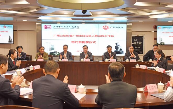 2017年3月28日上午,廣東省首家“公證駐法院工作站”掛牌儀式在廣州市白云區人民法院舉行。