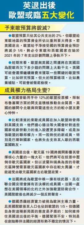 ●英國曾動用手中12%的歐盟投票權,限制布魯塞爾方面的開支並積極推動自由貿易,英國的離開令北歐與荷蘭這些北方的較小盟友憂心忡忡。