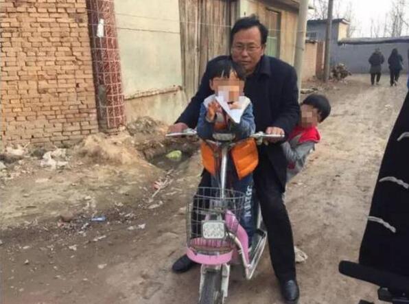 杜志浩的父親杜洪章用電動車接送兩個孩子
