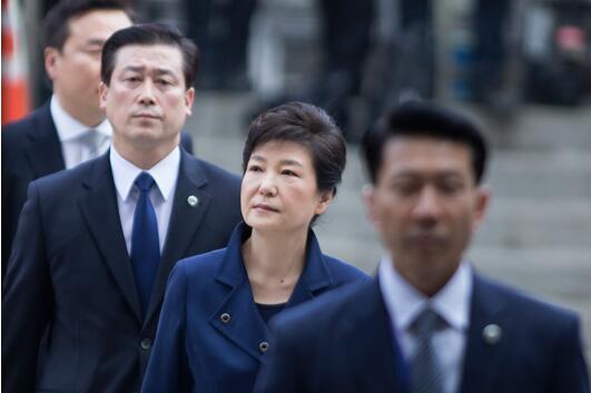 2017年3月30日,韓國法院開庭審理是否批準逮捕前總統樸槿惠,樸槿惠決定出庭接受訊問,力圖阻止法院批準逮捕令。圖為樸槿惠走出宅邸,前往法院。