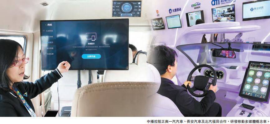 中播控股現正在與一汽汽車、長安汽車及北汽福田合作,研發移動多媒體概念車。黃秋智透露,公司目標是在2018年正式推出首批衛星移動多媒體汽車。