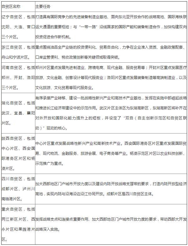3年多来,自贸区深耕国家战略的任务依然不变。辽宁、浙江、河南、湖北、四川、陕西、重庆7地自贸区,将对接长江经济带、中部崛起、西部大开发、振兴东北老工业基地等国家重大区域发展战略。