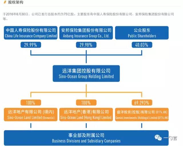 遠洋地産目前的股權結構,處于安邦與中國人壽兩强對峙階段,兩個大股東,都止步在30%的紅綫之外一點點,二者的股份差距是0.01個百分點。