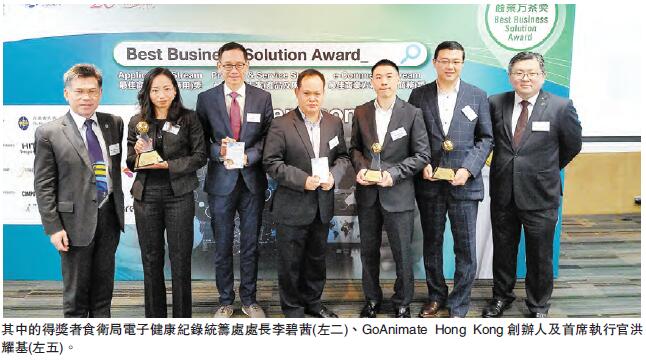 【香港商報網訊】記者潘仲男報道:2017香港資訊及通訊科技獎最佳商業方案獎昨日頒獎,本年度一共頒發16個獎項,分別由11間企業奪得。其中提供雲端動畫制片平台的中小企奪得年度大獎。此外,政府食物及衛生局及醫院管理局的電子健康紀錄互通系統亦榜上有名。