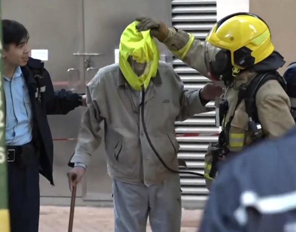 有年老居民由消防員帶落樓,途中使用了消防員提供的氧氣面罩。
