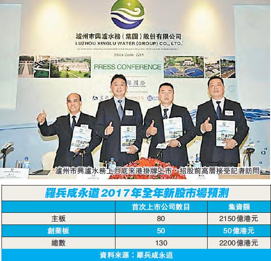 就今年全年IPO預測,羅兵咸永道的報告指,預計今年首次上市公司可望達130間,集資總額可望達2200億元,打破去年紀錄1948億元。其中,主板首次上市公司可望達80間,集資總額達2150億元;創業板上市公司則可望達50間,集資總額50億元。