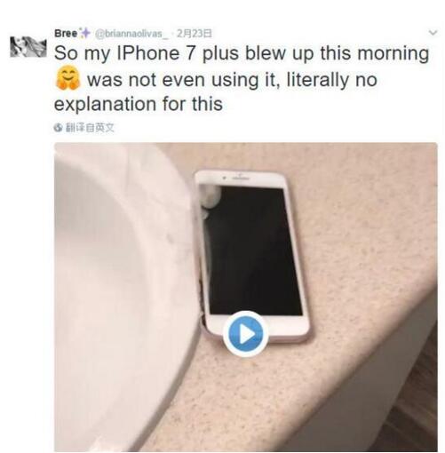發布該視頻的人名為Brianna Olivas,來自亞利桑那州,她在字幕上寫道:“我的iPhone 7 Plus今天早上爆炸了,當時我甚至都沒使用它,這完全無法解釋。”圖為今年2月發生爆炸的iPhone 7。