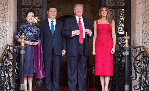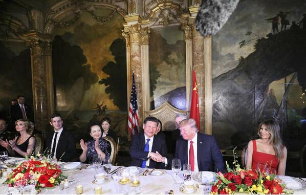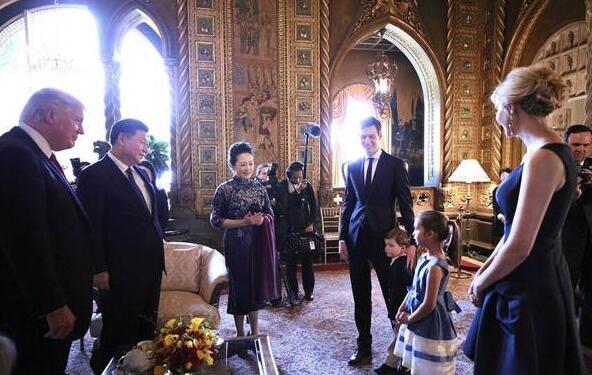 下午5時許,習近平和夫人彭麗媛抵達海湖莊園,特朗普和夫人梅拉尼婭在停車處熱情迎接。兩國元首夫婦合影留念,親切交談。兩國元首夫婦共同欣賞了特朗普外孫女和外孫演唱中文歌曲《茉莉花》并背誦《三字經》和唐詩。