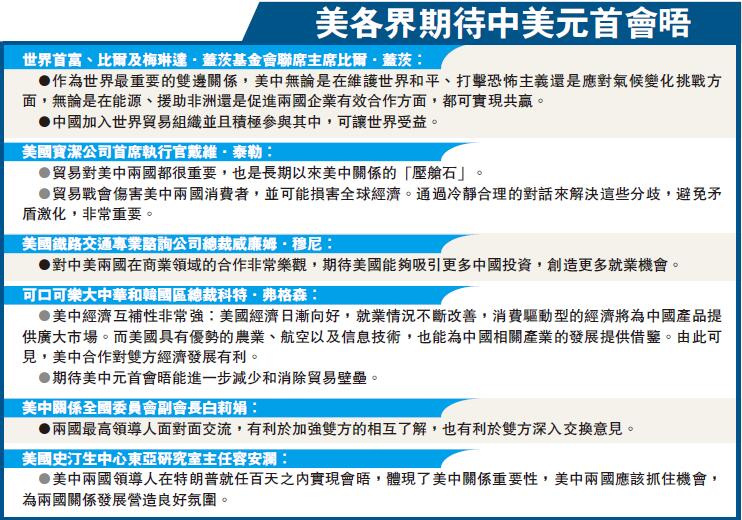 事實上,特朗普競選總統之時,對中國一度發出負面、強硬言論,提出將中國列為匯率操縱國、打經貿戰、質疑「一中原則」等,進而引發各界擔憂。但是,特朗普很快調整了對華政策。在與習近平通話中,特朗普表示美國政府堅持奉行一個中國政策。美國國務卿蒂勒森上個月訪華,多次肯定「不沖突不對抗、相互尊重、合作共贏」的兩國關系發展方向。中美關系政治基礎得以確定,亦為習特會奠定了基礎。