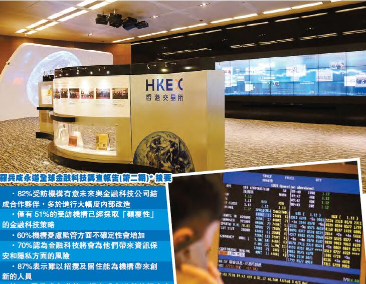 反觀香港的金融科技則一直被人轟落后,羅兵咸昨日亦發出結果顯示,本港受訪金融機構僅願意將14%收入投入發展金融科技,低於內地的32%及全球的15.4%水平。