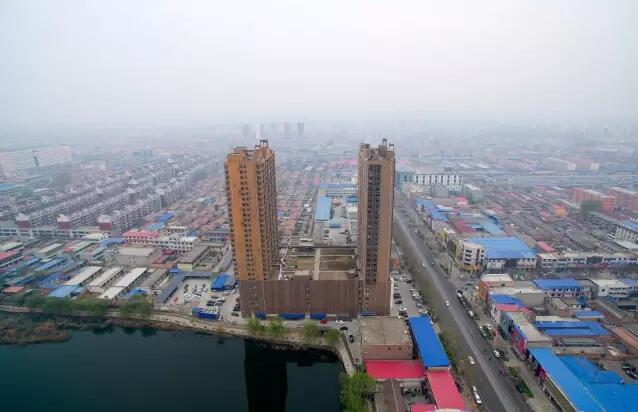 雄縣縣城中心區,兩座高樓聳立,是溫泉湖商貿中心,在一片矮樓平房當中鶴立雞群,是雄縣縣城的標志性建筑物之一。
