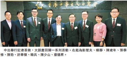 【香港商報网訊】記者李嘉倩、謝巧玲報道:香港中華出入口商會會長張學修,副會長許華杰、陳建年,秘書長陳勁等一眾首長,昨日在該會會所與傳媒茶敘,詳細介紹該會即將舉行的一系列慶回歸活動。張學修表示,為吸引年輕人參與,活動內容都非常「貼地氣」,希望對參與者有所啟發,其中「尋根追夢同心同行」活動是慶回歸系列活動的重頭戲,以年輕人為對象,圍繞「尋根」、「追夢」的主題,游歷內地多個城市,包括北京、南京、上海等,以加強香港青年對內地的認識,加強彼此交流,緩解矛盾。