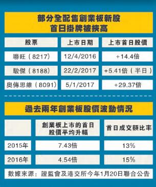 自從證監會與港交所於今年1月20日發表聯合聲明后,截至4月7日止,再有10隻股份在創業板上市,當中設有公開發售部分或為純公開發售的股份,上市首日的股價變動僅為幾個百分點,而不是數倍或幾十倍。證監會認為,有關數字顯示,設立公開發售部分,更能建立廣泛的股東基礎,以確保有一個公平有序的市場。