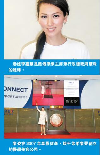 但今年比黎姿勢頭更猛的是另一支創業板的名人新股。根據資料顯示,今年1月至今,一共有15隻創業板新股上市。從上市首日的漲幅來看,漲幅最高的是1月5日挂牌的創業股新股奧傳思維(8091),當日收報8.2元,相較配售價0.27元狂飆29.37倍。該公司為香港戶外廣告空間及服務供應商,以配售方式登陸香港創業板。據悉公司漲幅如此凌厲,也是緣於「名人效應」,公司主席兼行政總裁周慧珠的媳婦是港姐李嘉慧,上市當天李嘉慧也盛裝出席捧場。不過,好景不長,該股在1月9日開始下跌,1月10日更是暴跌85.07%,這些新股的明天真是難以預測。