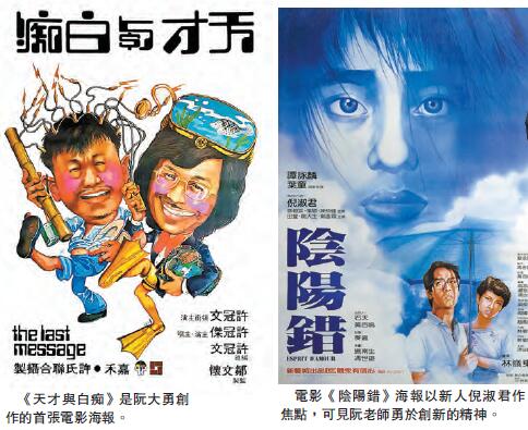 阮老師創作的海報為何能成為經典,那是源於他懷抱一份藝術家的創意。他透露自己在創作海報時,會貫通融匯電影劇情:「記得繪畫《陰陽錯》海報時,男主角是如日中天的譚詠麟,女主角則是剛出道的倪淑君。那幅海報的構思,是倪淑君的臉孔占了三分二篇幅,譚詠麟小小身影則放在海報右下角位置。當時我也擔心這個意念不被接納,幸好獲黃百鳴等老闆支持,也正是因為他們充分給予極大的自由度和創作空間,讓我不受外界干擾,可以集中意念創作海報。」