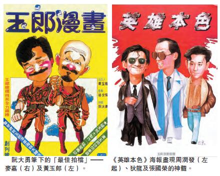 在阮老師筆下的周潤發、張國榮、梅艷芳等天王巨星,活靈活現於海報上。