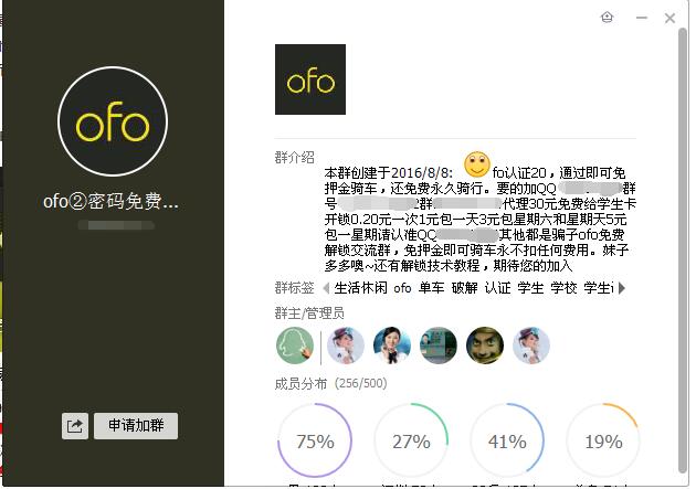 爲此@懂懂筆記嘗試就免押金注册一事詢問了其中一個QQ群的管理人員,對方表示ofo的學生認證業務只需要支付一定金額的手續費,然後提供手機號碼即可,剩下的事情均由他們幫忙進行認證。但是從部分媒體報道來看,有些共享群在收費後,會直接消失或者提供不了免費手續,讓繳費者蒙受損失。