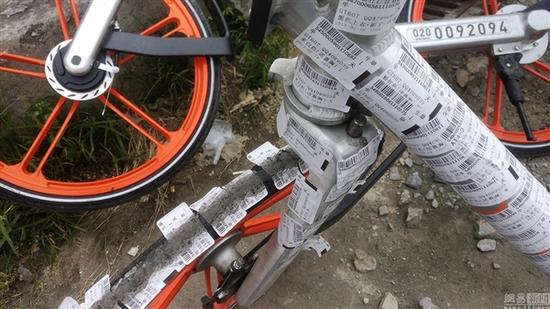 近期南京和成都兩地在共享單車徵求意見稿中都提出,共享單車運營企業要加强車輛的日常維護,及時清理車身違法小廣告。對此很多單車企業的運營人員也表示非常無奈,他們發現這種情况只能盡力去除,但是不乾膠的擦除非常費力,多少都會留下一些痕迹。曾有平臺運維人員對媒體表示:“這些不法商家,損人利己,一個小廣告抹黑了一輛車。”
