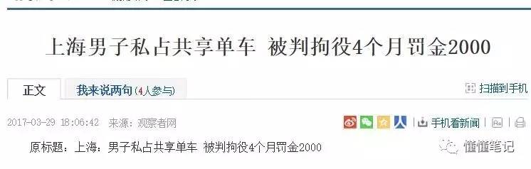 過去一年來,私占共享單車被處以罰款、拘役的相關案例已經很多,很多可能一輩子都沒進過“局子”的人,却因爲一時無心觸犯了法律。這裏面有把單車放汽車里拉回老家的,也有私藏單車在自己房屋的,也有私自給單車換了專用鎖的,更有明知故犯侵吞買賣單車的。