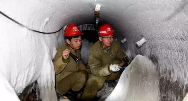 同时,为了保证止水,工程采用-28℃的低温盐水冻结管,将冷冻管插入顶管中,将管幕之间35厘米的土体冻结,冻出一个厚2米-2.6米、长255米的大冰筒,形成止水帷幕,与曲线管幕共同支护隧道内的暗挖工程。“这255米的冰天雪地日均耗电10万度,电费1年约4000万元。”