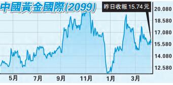 美國近日向敘利亞射導彈,地緣政治風險上升,刺激油價上揚,資金流入金市,包括中國黃金國際(2099)在內的貴金屬股亦成資金焦點。