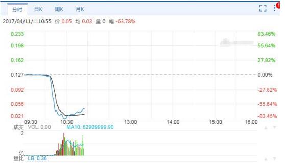 鳳凰財經訊 4月11日港股再有股票斷崖式暴跌,中國金控上午10時左右開始急速下跌,現跌75.591%,報0.031港元,半小時內跌幅達80%。同時港股急跌逾200點,逼近24000點。