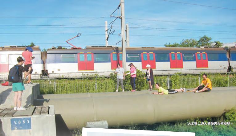 新界東北有不少大水管,內裏輸送的是東江水,說道最容易接近的,必定是接近羅湖邊境的梧桐河抽水站那一帶的輸水管道,水管直徑有54吋,遊人很容易就攀上。這一帶水管更有妙處,因隔鄰就是火車軌道,飛馳的火車,久不久就擦身而過,若夠膽量,可站與火車say hi呢!梧桐河的東江水輸水管道沒有交通工具可達,最便利方法是踩單車尋訪,不論陰晴,傍倒影處處的梧桐河慢踩,確是賞心樂事。