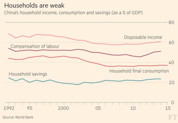第三個選項是暫停信貸增長并急劇提高消費以抵消投資的下降。這里的問題是,家庭可支配收入與GDP之比只是略高于60%,同時私人消費大約占到GDP的40%。按亞洲標準來看,這樣的儲蓄率并不太高。逾一半的國民儲蓄由利潤和政府儲蓄組成。