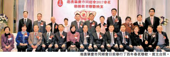 【香港商報网訊】港澳肇慶市同鄉會日前假尖沙咀百樂門宴會廳舉行丁酉年春茗聯歡,出席嘉賓有肇慶市端州區區委江啟甯書記、政協委員會歐紹騰主席、統戰部部長陳彩霞、副部長涂雄文,立法會議員梁美芬,中聯辦九龍工作部副處長黃小銳,香港肇慶端州海外聯誼會執行主席陳芳蒂、副主席葉旭陟及羅文生,肇慶市鼎湖區同鄉會代表歐文偉,廣陵、懷集、封開、德慶四縣及澳門特區代表等,賓主聚首一堂,場面熱鬧。