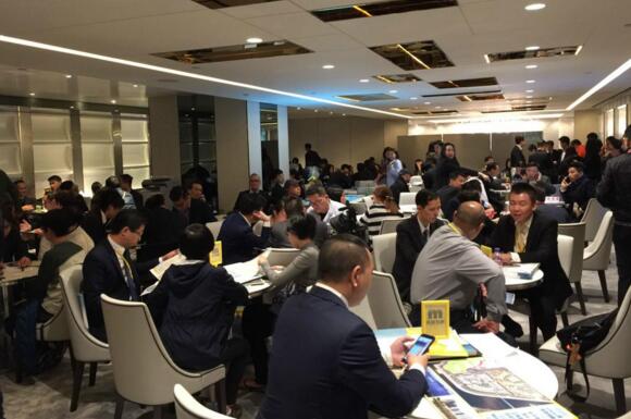 政府前晚突擊加辣,將「一約多伙」交易劃一納入從價印花稅稅網,昨日零時起須付15%稅款。由長實發展的北角豪盤維港頌,為政府收緊新辣稅後首個開售的新盤。該盤日前收近900票認購,以超額近5倍之勢,昨天發售首輪152伙。該盤下午2時左右展開大手認購階段,位於紅磡的售樓處所見,依然人頭湧湧,登記人龍目測逾100米,環繞商場近半個圈,高峰期估計聚集逾300人。