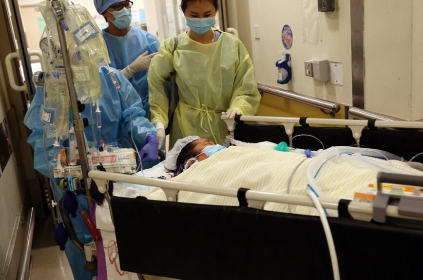 捐肝者鄭凱甄手術順利完成,推出手術室。