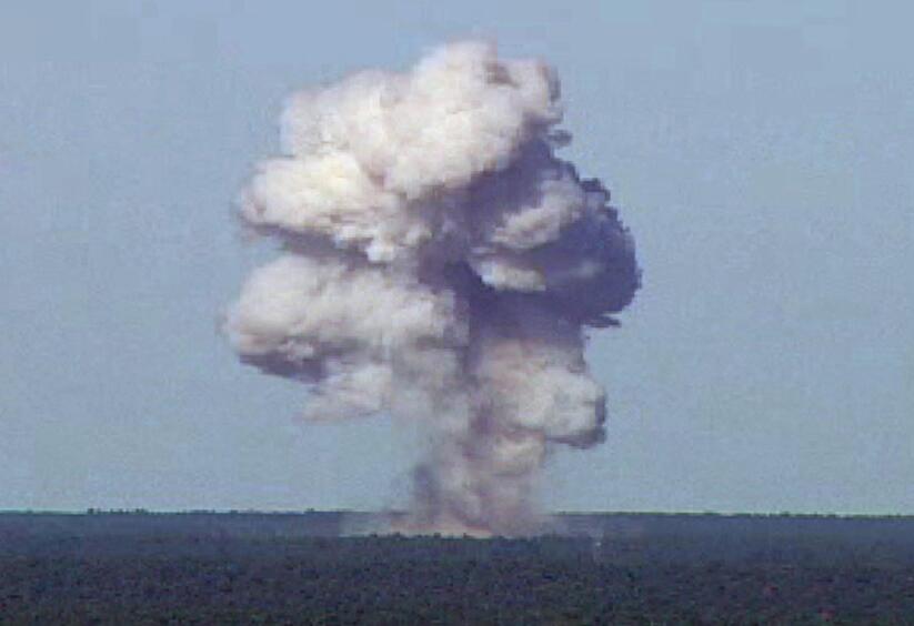 美國空軍昨日公布的圖片顯示,「炸彈之母」早於2003年在佛羅裏達州測試成功,爆炸時產生的巨大蘑菇雲。路透社