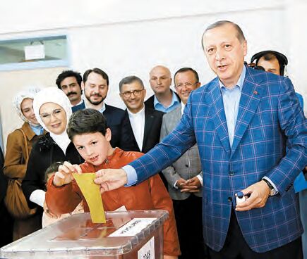 埃尔多安偕同孙儿及妻子到伊斯坦堡的票站投票。路透社