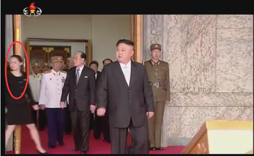 15日,為慶祝金日成誕辰105周年和太陽節,朝鮮舉辦大閱兵,金與正再次出席。這天,金與正同朝鮮最高人民會議常任委員會委員長金永南一起,站在主席臺入口兩側,迎接金正恩的到來。金正恩入場后,她自覺退到主席臺后方,以免搶鏡。