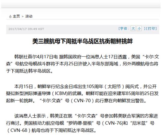 4月9日CNN一本正經的報道,美國航母打擊大隊北上朝鮮半島