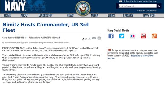 14日美國第三艦隊司令還在視察尼米茲號的準備工作