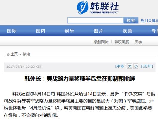在韓聯社14日高呼美國戰略力量逼近朝鮮施壓的時候