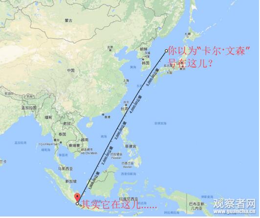 按照美方報道周六15日卡爾·文森號已經跑到了巽他海峽,那么中俄軍艦為了追蹤它到底是跑了多遠?