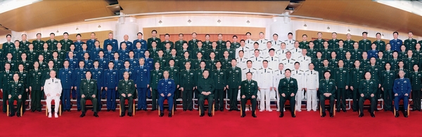 習近平當天來到八一大樓,同新調整組建軍級單位主官親切握手,合影留念。