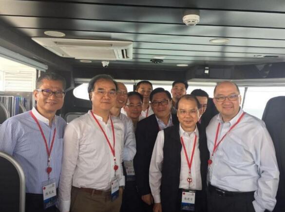 梁振英連同多名主要官員包括政務司司長張建宗、財政司司長陳茂波等先後抵達尖沙咀中港城碼頭,乘船前往廣州南沙,展開三日的考察行程,隨團的包括多名行會成員以及商界代表。