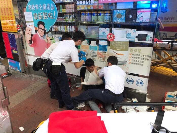 油麻地發生斬人案!早上7時許,兩名男子在坐的士至彌敦道與文明里交界下車時,數名持刀男子撲出向兩人斬去,兩人寡不敵眾,其中一人不支倒地坐在一間化妝品店門外,另一人則返回的士上,的士司機見狀大驚報案;數名刀手則驅車逃去。