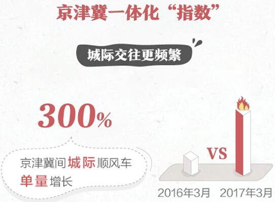 【香港商报网讯】随着雄安新区的设立,京津冀一体化进程将更快。而交通一体化是京津冀协同发展的重要系统,也是先行的领域。4月17日,滴滴顺风车发布了《京津冀一体化“城际出行指数”》。