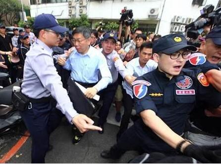 連台北市長柯文哲也遭波及,不僅被擋在“立法院”外面,還被人趁機揍了幾拳。