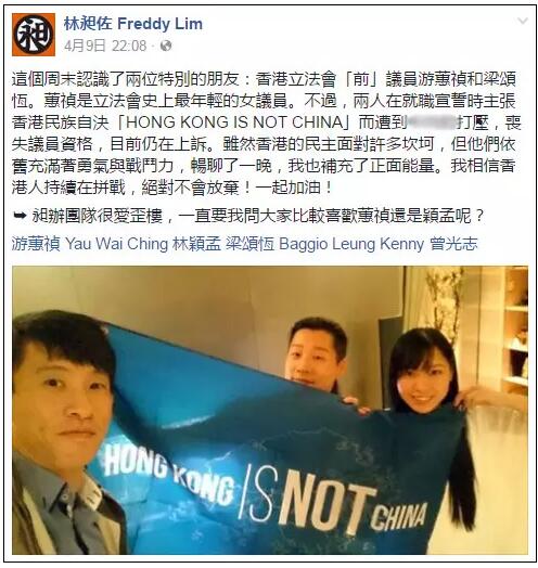 事實上,梁頌恒本月內已是多次赴台“播獨”。4月9日,梁頌恒在社交網站(facebook)自曝:近日與游蕙禎一同竄訪台灣,期間與“台獨”政黨時代力量“立委”林昶佐會面。他還透露,除了台灣當地政黨及社運人士會面外,亦會見了一些“藏獨”分子,妄稱交流如何尋求“自決前途”。隨后,林昶佐透過社交網站回應梁頌恒貼文,并上傳了一張他與游梁一同拉起“HONG KONG IS NOT CHINA(香港不是中國)”旗幟的照片。林昶佐妄稱,游梁是因在就職宣誓時主張“香港民族自決”而遭中國大陸打壓,最終喪失了議員資格;他相信“香港人和台灣人都可以抬起頭走出屬于我們的路”。