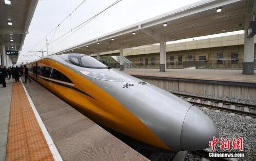 資料圖:2017年3月21日,新型CRH380AJ--0203動車組列車“黃醫生”從蘭州西車站高速場上線,開始檢測寶蘭客專蘭州西站至東岔站間334公里高鐵行車設備,寶蘭客專(蘭州局管段)聯調聯試正式啟動。楊艷敏 攝