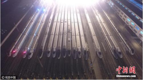 資料圖:高鐵“萬箭齊發”勢如“陸地航母”。 圖片來源:視覺中國